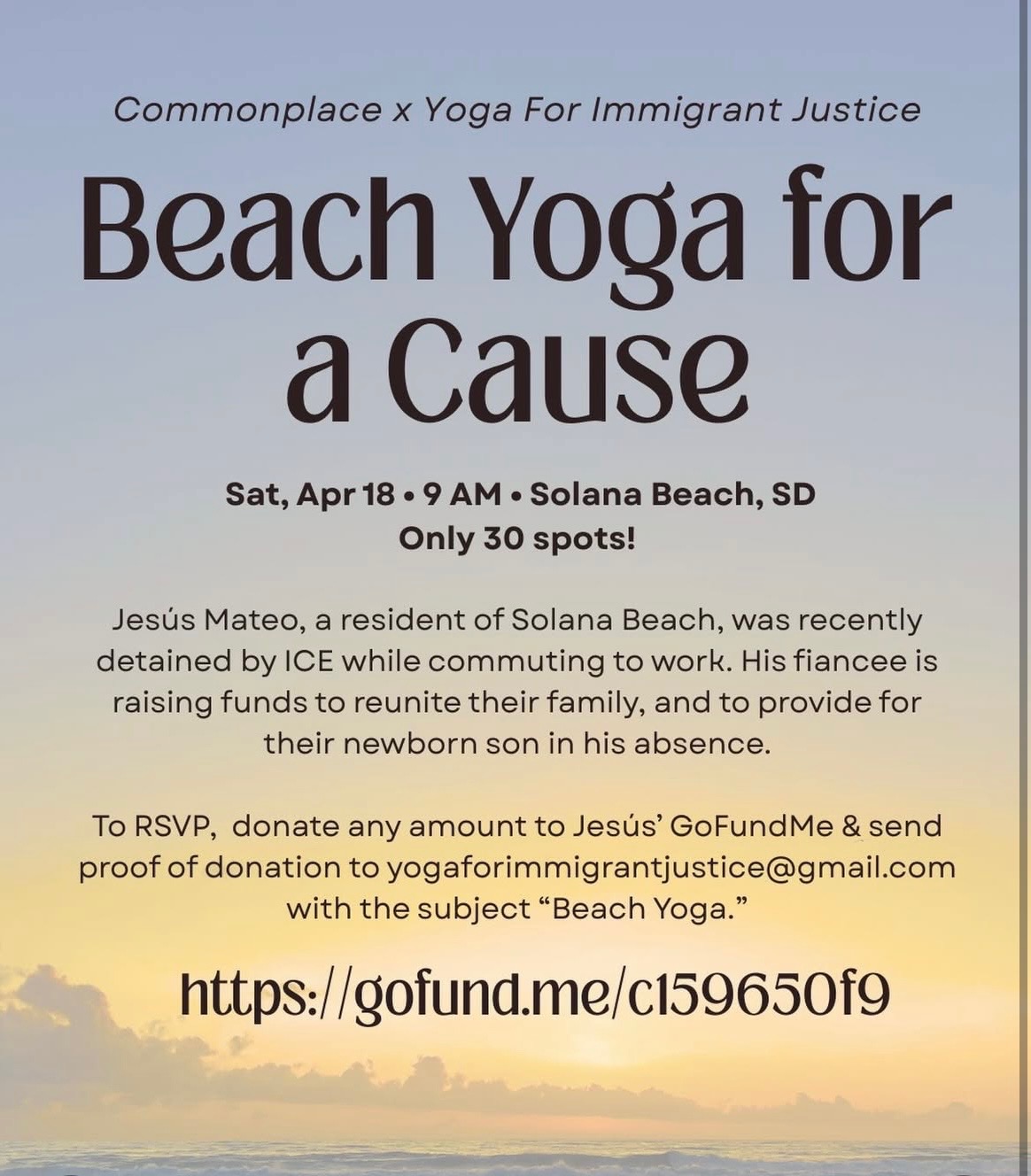 Beach Yoga for a CauseBy info / April 6, 2026 Beach Yoga for a Cause 72 72 people viewed this event. Register for event To register for this event please visit the following URL: https://gofund.me/055678575 → Date And Time 04-18-2026 @ 09:00 AM Location Solana Beach, CA Share With Friends Facebook Twitter Linkedin Xing Pinterest